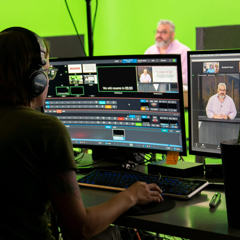 Our live studio team sets you up for success with studio-quality video work, be it on our full green screen set or via remote video kit, turning anywhere in the world into a soundstage.